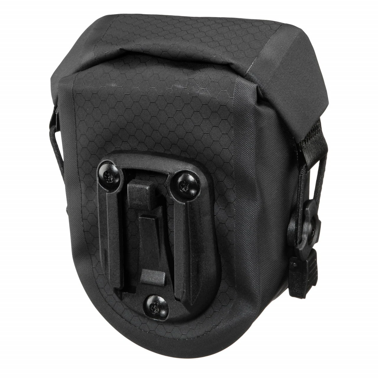 Die wasserdichte Satteltasche bietet perfekten Schutz für die wichtigsten Utensilien und ist mit Rollverschluss und Gummizügen einfach und kompakt verschließbar. Dank der extrem kleinen Abmessungen lässt sich die Satteltasche äußerst platzsparend am Rad montieren. Dazu wird die Halterung an den Sattelstreben fixiert. Ein leichtgängiger Klickverschluss ermöglicht das Anbringen und Abnehmen der Satteltasche mit nur einer Hand, alle notwendigen Teile werden mitgeliefert. Das Klicksystem wurde in der Handhabung noch einmal verbessert –, und gleichzeitig ist die Micro Two mit der Halterung des Vorgängermodells Micro kompatibel.